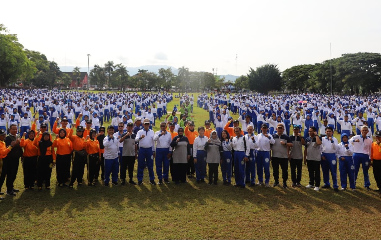 “Kegiatan latihan bersama ini sangat relevan dengan program unggulan Sehat Penduduke. Yakni menekankan pentingnya peningkatan derajat kesehatan melalui pencegahan penyakit, pembudayaan hidup sehat, serta dukungan terhadap aktivitas masyarakat yang memperkuat kebugaran jasmani,” jelasnya.
